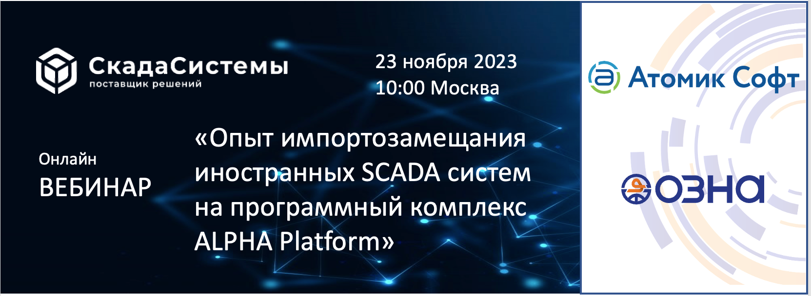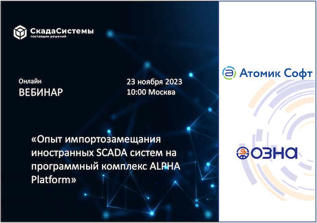23 ноября состоялся онлайн вебинар "Опыт импортозамещания иностранных SCADA систем на программный комплекс "Альфа платформа "